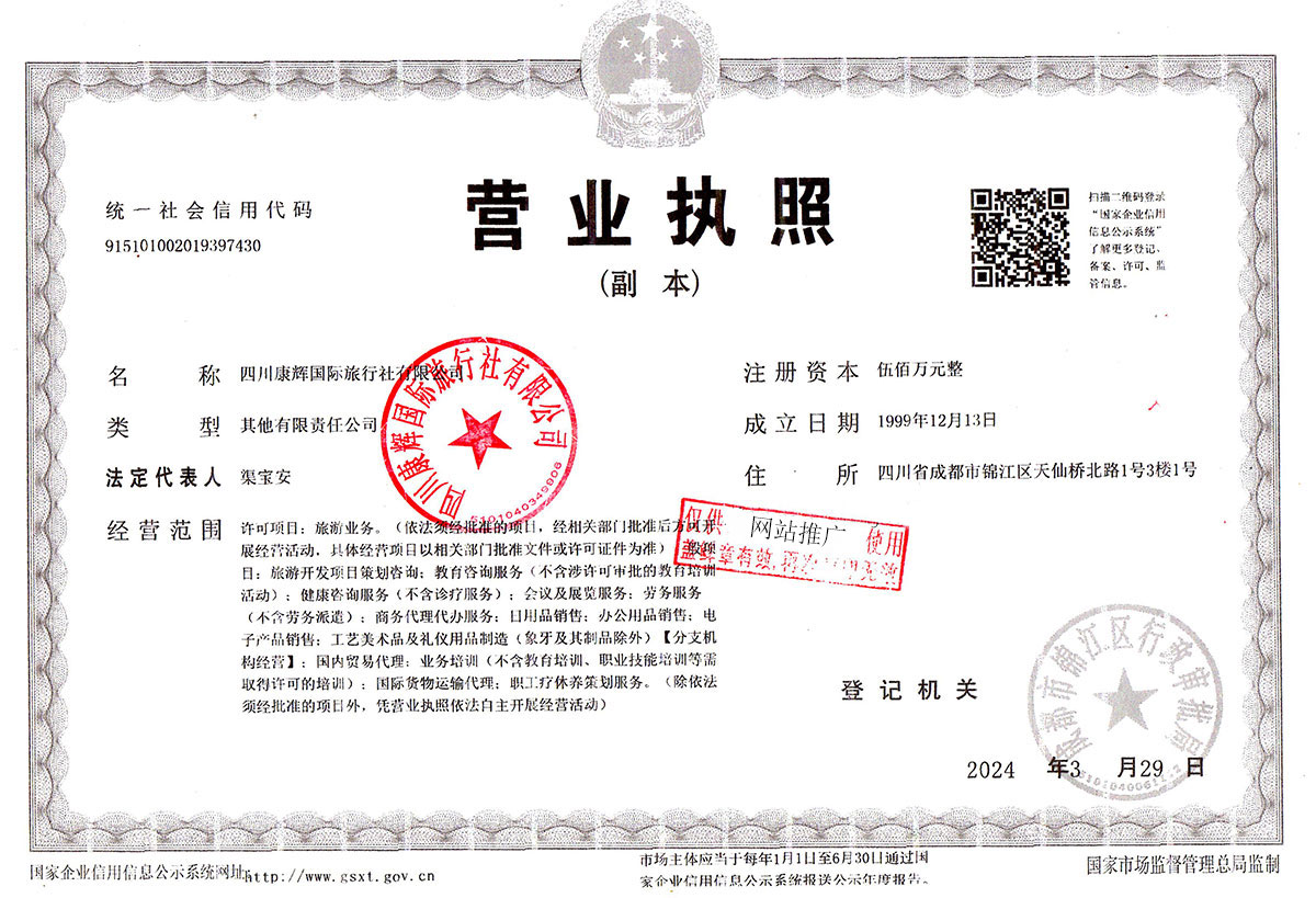 企业名称:四川康辉国际旅行社有限公司