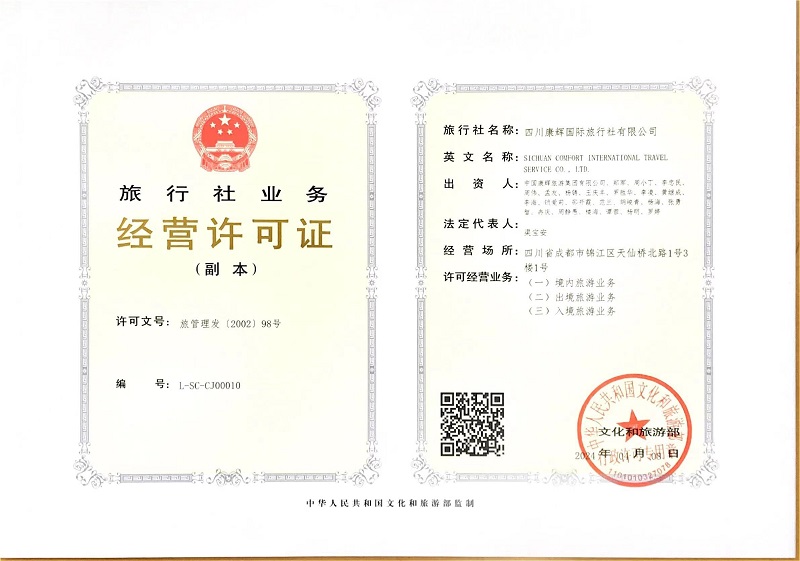 四川康辉是中国康辉旅游集团旗下的国有控股企业,具有最齐全的经营资质,获得了中国旅游行业的全部荣誉。